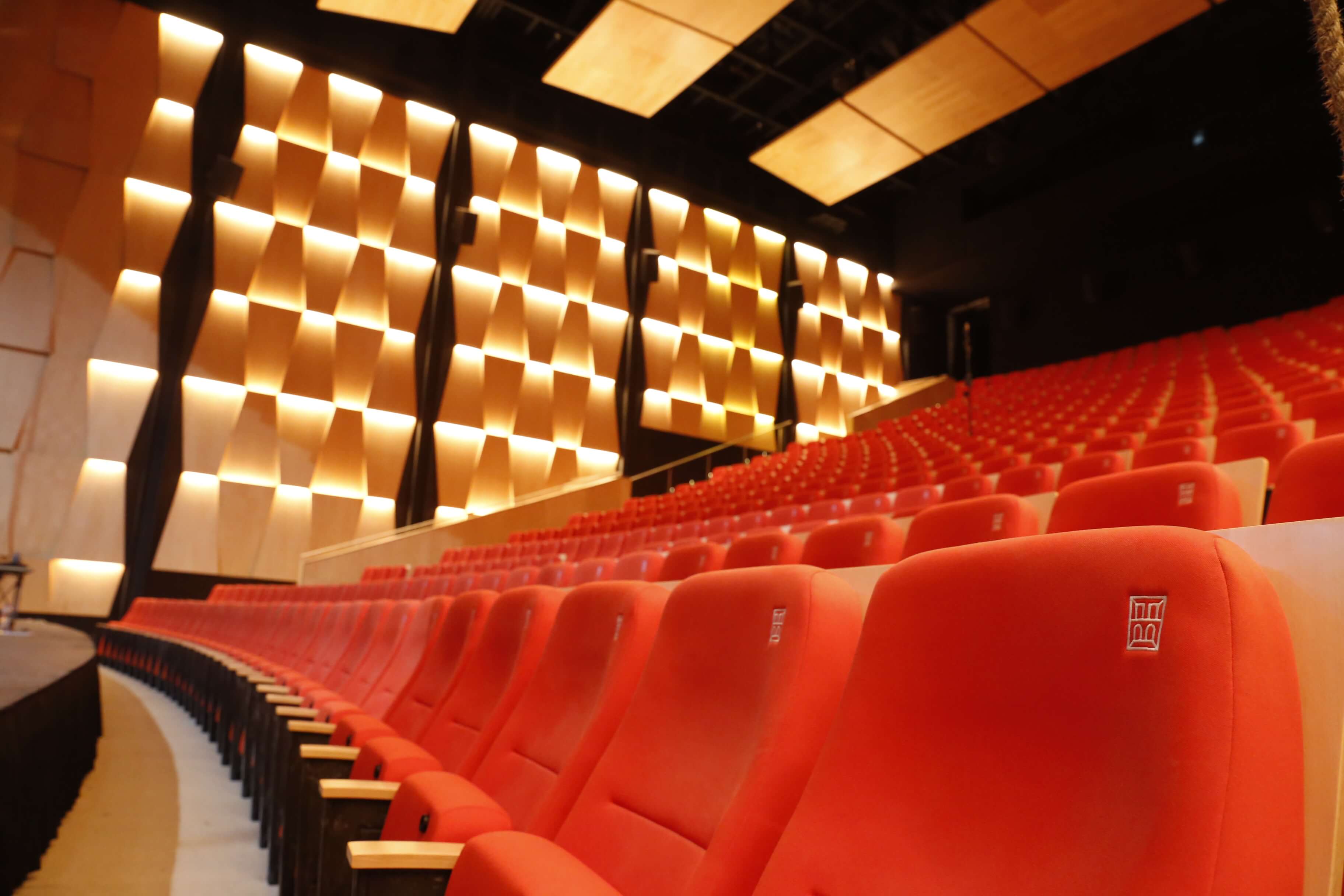 La sala tiene una capacidad máxima de 544 asientos con escenario corto, ajustable a 484 butacas mediante gradas retráctiles para escenario largo o foso de orquesta; diseño de isóptica con equipamiento de vanguardia en comodidad; así como acabados adecuados a las propiedades estéticas, técnicas y sonoras, como los lambrines de madera a los costados.